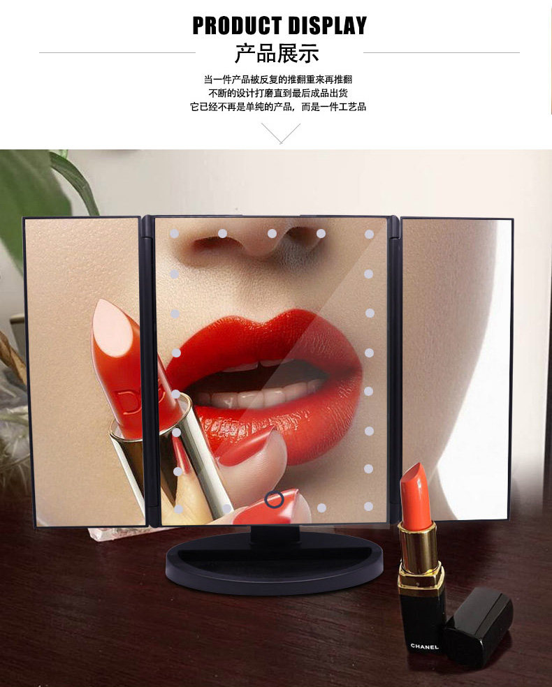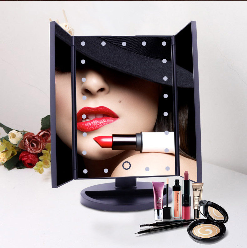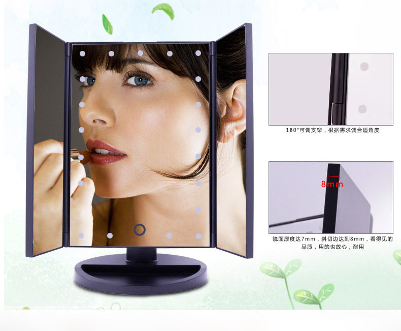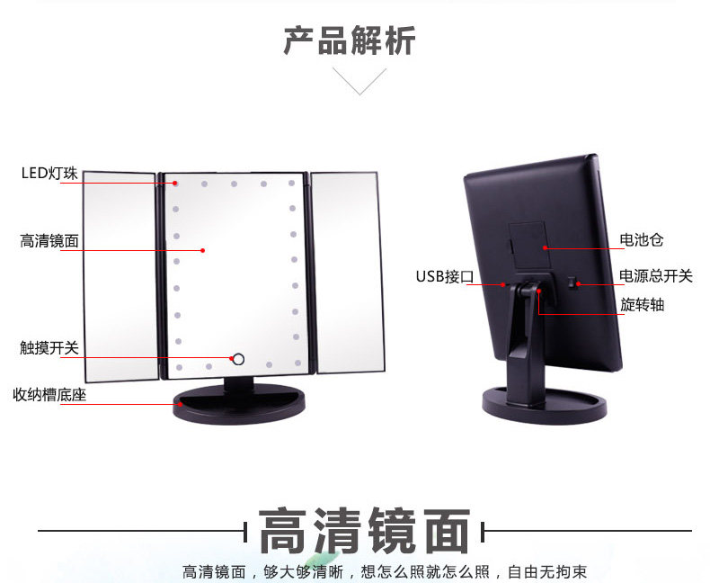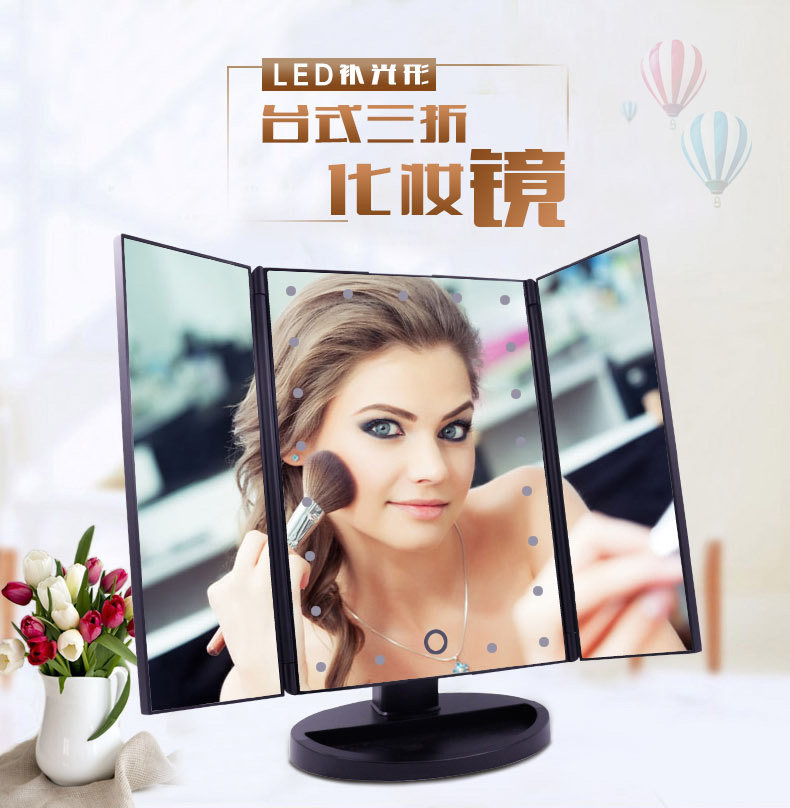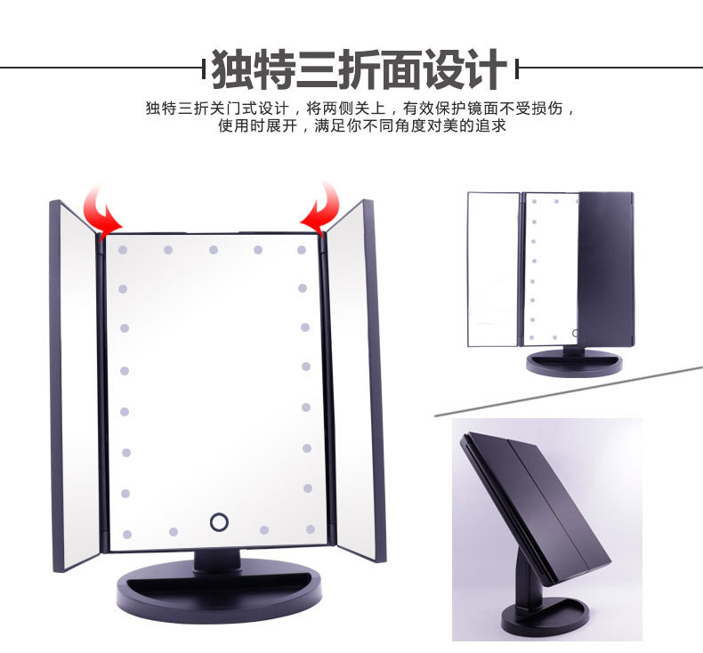 斐色耐LED大号台式化妆镜USB直插电源电池三面折叠多角度梳妆镜子