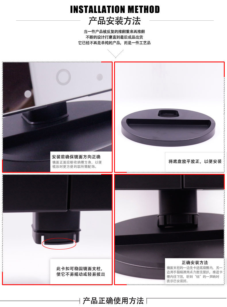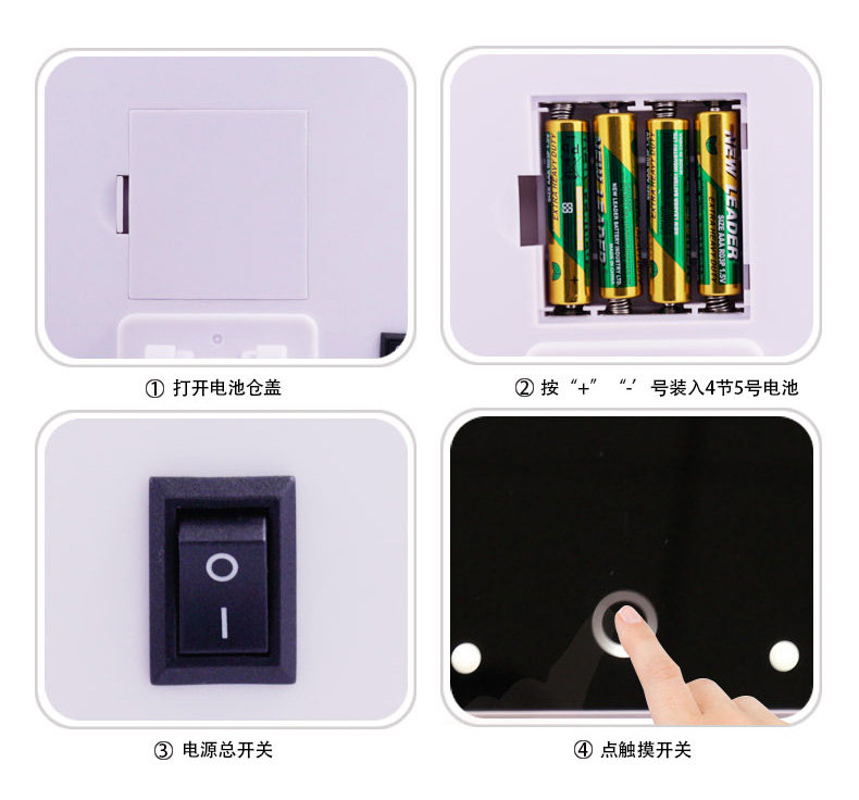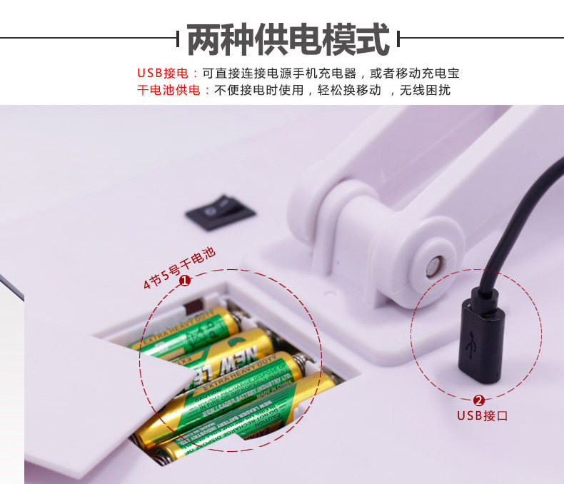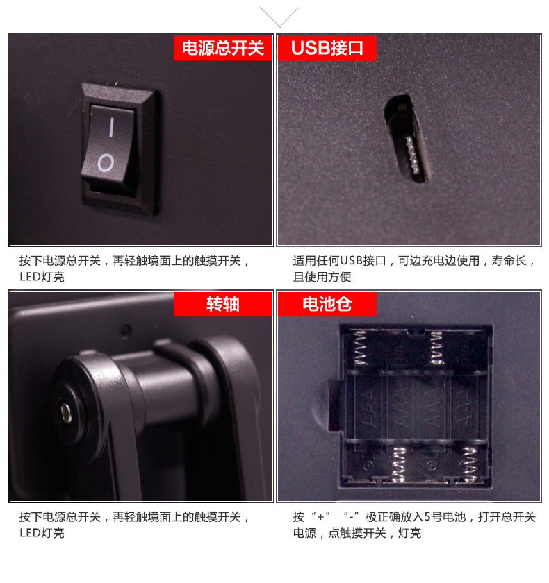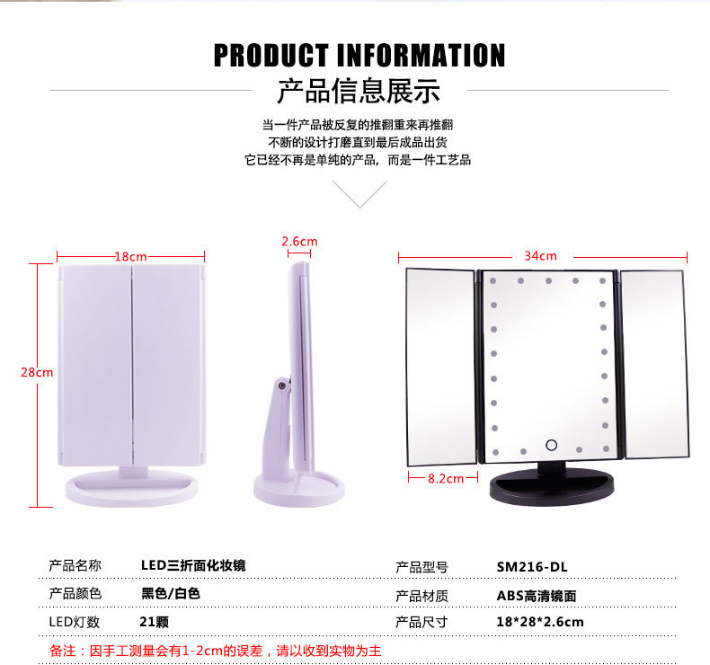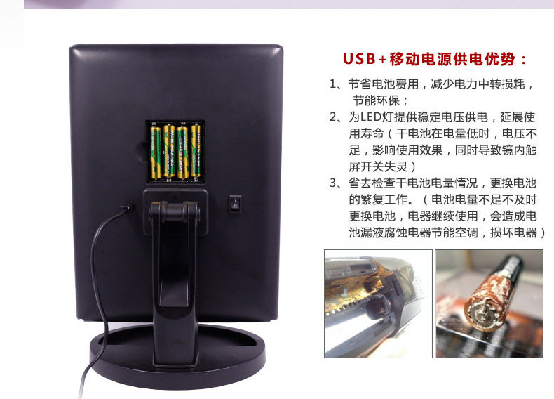 斐色耐LED大号台式化妆镜USB直插电源电池三面折叠多角度梳妆镜子