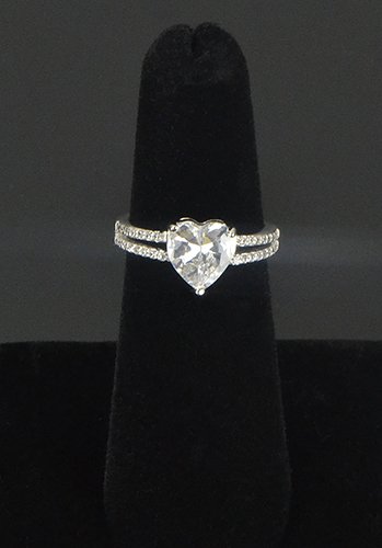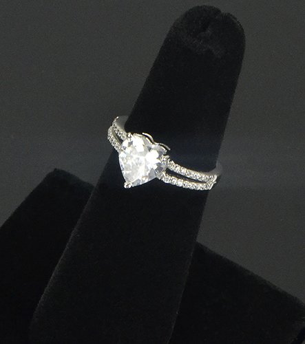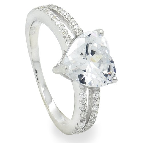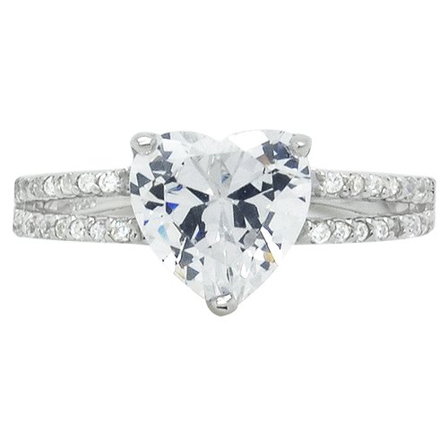 -. Feature : Plating: Rhodium / Base: 925 Sterling Silver / Split Shank ring with Sterling Silver Heart Cut Cubic Zirconia and Side Stones / Imported