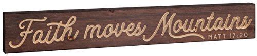 Faith Moves Mountains Brown 23.75 x 5.5 Inch Pine Wood Carved Barnhouse Block Tabletop Sign