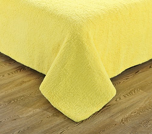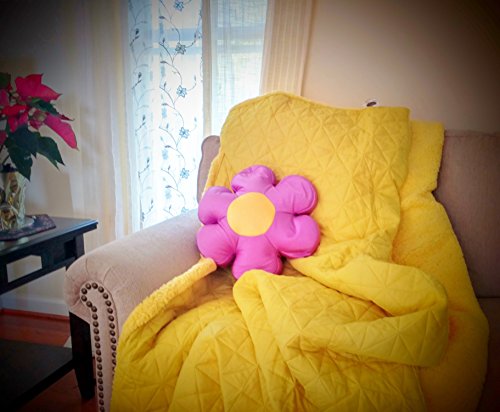 Features a solid bright sunny yellow shade on the quilted front side to give your bedding a clean and vibrant look! Backside of quilt is a much softer sherpa material in the same vibrant yellow shade for extra softness and comfort.
