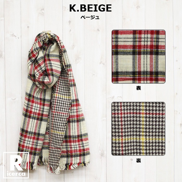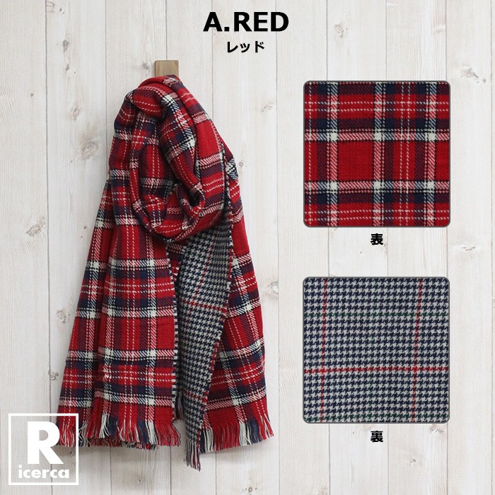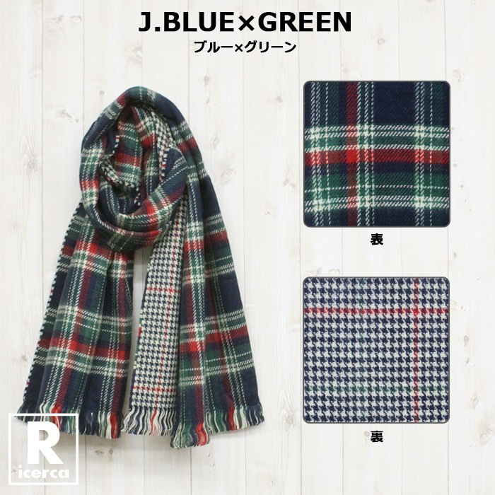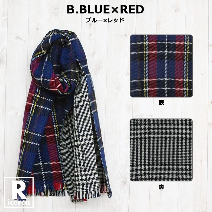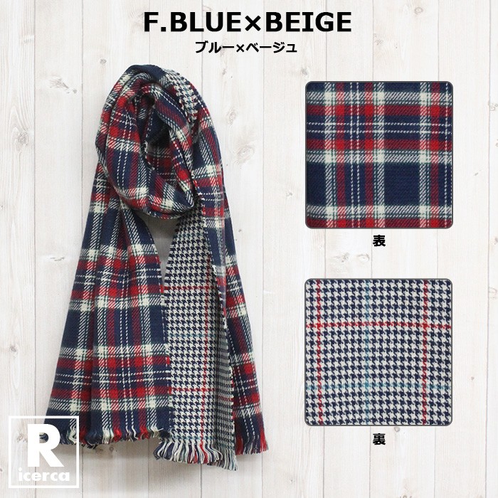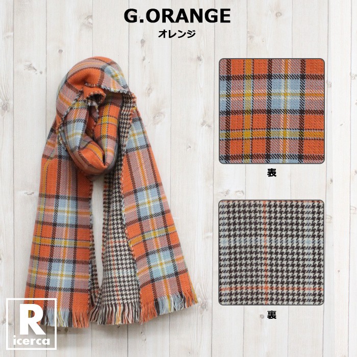 レディースファッション/ストール/学校/オフィス/カジュアル/チェック/リバーシブル/17aw/あったか/マフラー/大人/ブルー/レッド/グリーン/ブラック/パープル/ベージュ/オレンジ/ネイビー/デイリー/