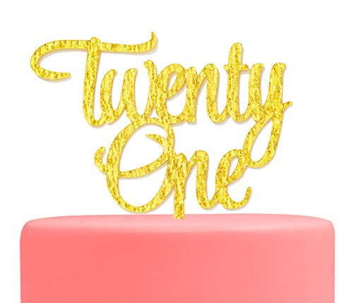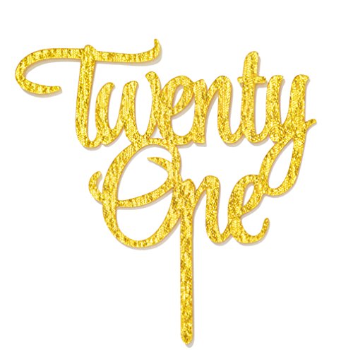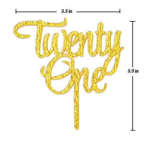Twenty One Acrylic Cake Topper, 21st Birthday, Anniversary Party Decoration Supplies(Gold)