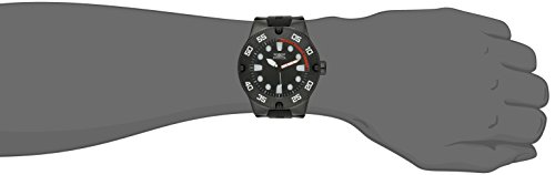 [Description] Round diver``s watch with numbered bezel and textured black dial with luminescent hour markers and hands 52 mm stainless steel case with synthetic-sapphire dial window Japanese quartz movement with analog display Silicone band with buckle closure Water resistant to 100 m (330 ft): In general_ suitable for swimming and snorkeling_ but not scuba diving
