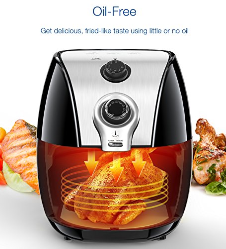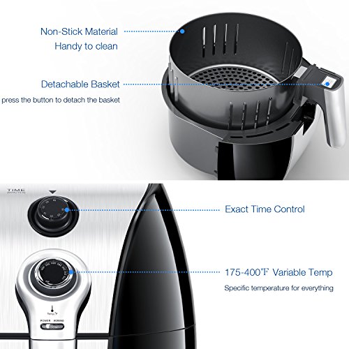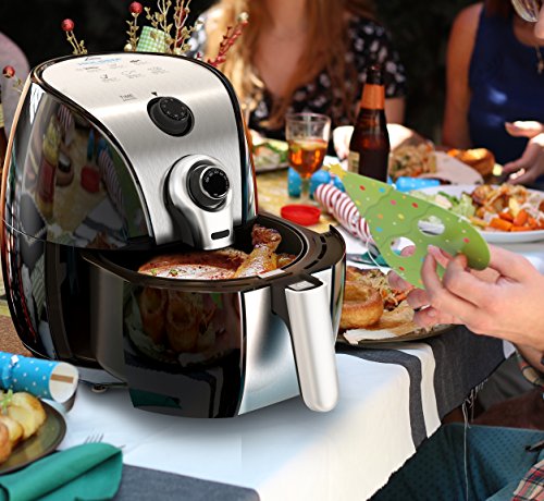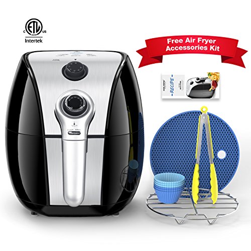 Live a Healthier Lifestyle while still Enjoying Your Favorite Food! Just because you want to improve your eating habits doesn't mean you have to give up all of your favorite food! With the HOLSEM low fat fryer, you can cook in a variety of different ways, and that of course includes frying! The best part about frying in the HOLSEM Airfryer is that you only need a tablespoon of oil or less so on average you will be consuming about 70% less fat than you would when cooking with a traditional deep fryer! This all now Hot-air fryer provides an easy and healthy way of preparing your favorite ingredients. By using hot rapid circulation and a top grill, it is able to make numerous dishes. The best part is that the Hot-air fryer heats food at all directions and most of the ingredients do not need any oil. The 3.4 Quart oil-less air fryer includes a mini grill, six cake molds, a pot holder, a recipe, 30-minute timer, adjustable temperature control from 175°F-400°F, and removable basket for easy transfer of food.Feature