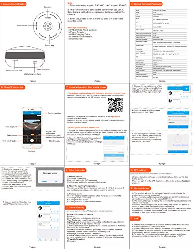 Super Wide View Angle:The over look angle is 360°and side angle is 180°with 1/3'' fisheye Lens, see the entire room in stunning HD video quality during the day or at night(with Night Vision).HD 960P Video format:1280*960£¨1.3MP) Resolution with genuine color by H.264 compression format