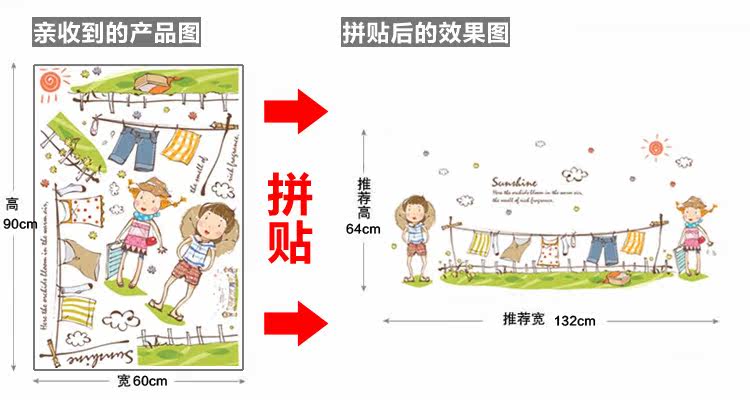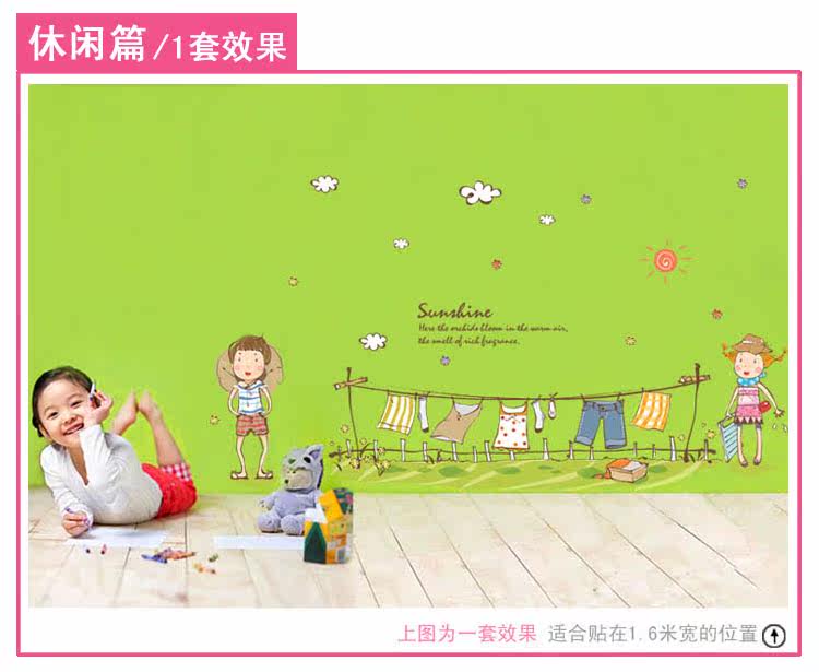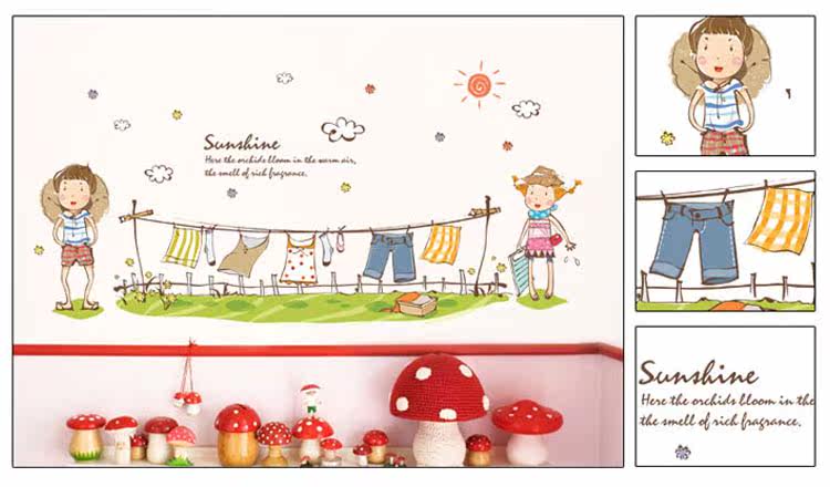 墙贴 儿童房卧室装饰环保可移除墙贴纸 幼儿园教室装饰一起晾衣服