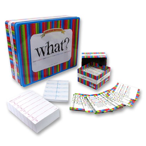 -. Binding : Toy -. Brand : Outset Media -. EAN : 0625012390194 -. Feature : The hilarious party game for 5 or more players / Perfect for any occasion / Comes in a tin box / Warning: Prepare to Laugh out Loud / Includes 140 Cards, Answer Pad, Score Pad, and Pencils -. IsAdultProduct : 0 -. Label : Outset Media -. Manufacturer : Outset Media -. Model : 39019 -. MPN : 39019 -. PackageQuantity : 1 -. PartNumber : 39019 -. ProductGroup : Toy -. ProductTypeName : TOYS_AND_GAMES -. Publisher : Outset Media -. Studio : Outset Media -. Title : Party Game - What? Deluxe Edition - The Ultimate Laugh Out Loud Board Game -. UPC : 625012390194