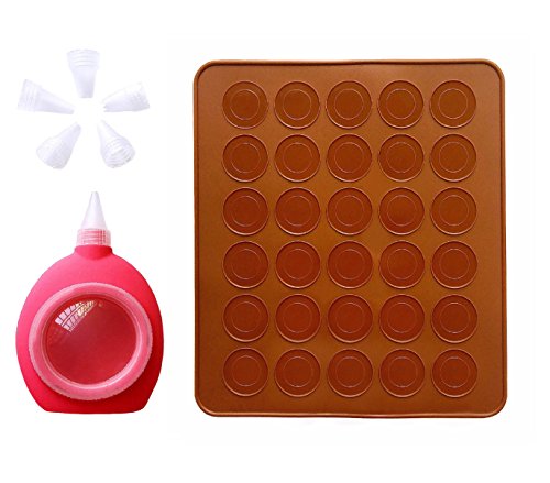 Aimyoo Large Owl Shape Silicone Macaroon Pastry Cream Cake Muffin Baking Tool Set - Decorating Pot with 6pcs Piping Nozzles + Pastry Baking Sheet Mat