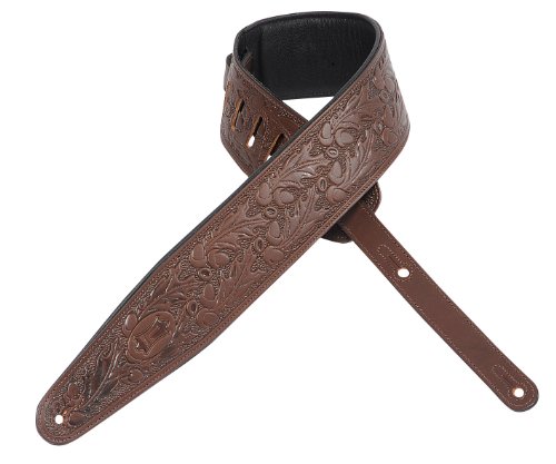 -. Title : Levy's PM44T01 Acorn & Oak Leaves Design Tooled Leather Guitar/Bass Strap -Brown