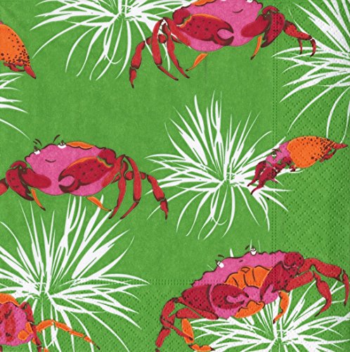 - Entertaining with Caspari Crabby Green, Luncheon Napkin, Pack of 20