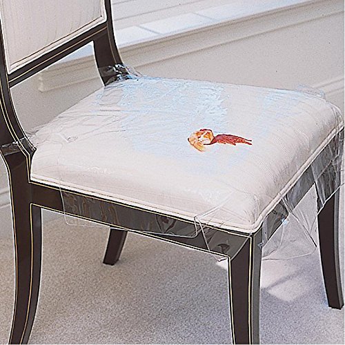 -. Feature : Guards against food and drink spills / Clear plastic won't hide chair seat's design / Ties hold plastic seat cover in place / Wipes clean easily