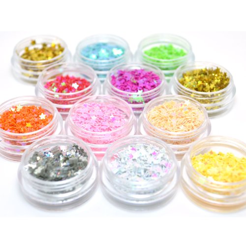The nail art kits are packaged in 12 reusable 5 grams jars made for simple, easy nail art and no mess storage.