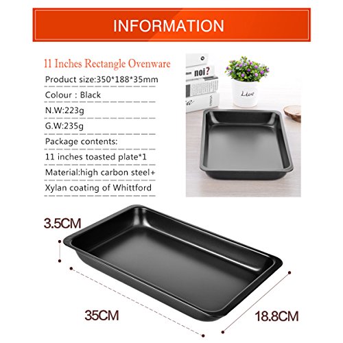 Lemonda Heavy Duty Healthy Wide Space Steel Rectangle Toaster Oven Pan Tray Cake Bread Ovenware Plate Non-stick Baking Tool Set (M:11 Inch)