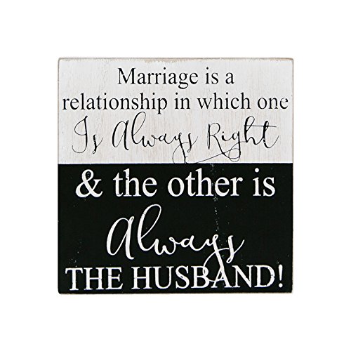 6" x 6" x 1.5" wooden block sign (MARRIAGE...ONE IS ALWAYS RIGHT), black and white- 19012