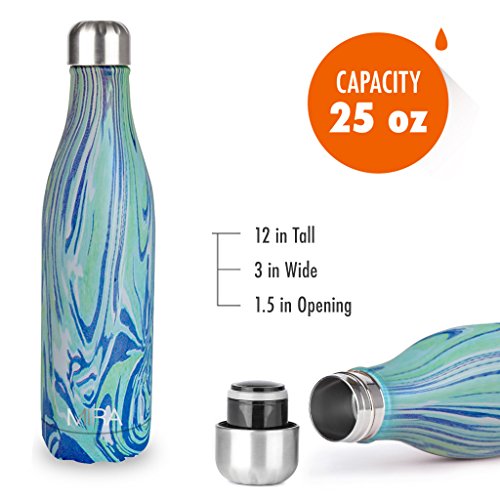 Perfect Size: 25 oz (750 ml) capacity is large enough to fit your daily hydration needs. You can also store milk or coffee. The stainless steel repels any lingering flavors. Put your portable sports water bottle in your gym bag, backpack or briefcase as your daily companion.