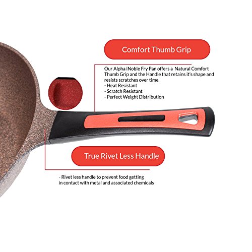 This new iNoble Non-Stick Coating is done by a different and innovative coating method. Traditional layer-based coatings are easily broken but this pan has powerful coating strength based on strong combination-structure of numerous coating particles. An excellent non-stick pan that requires a lot less oil and you can start cooking healthy by eliminating extra calories from the use of fatty oils or butter. Made in Korea Innovative inoble coating cooking surface delivers enhanced heat distribution and unprecedented non-stick performance without releasing harmful fumes or toxins at high temperatures.Innovative inoble coating cooking surface delivers enhanced heat distribution and unprecedented non-stick performance without releasing harmful fumes or toxins at high temperatures.
