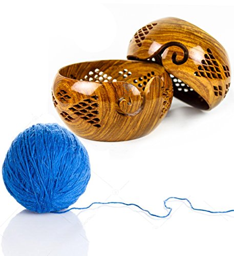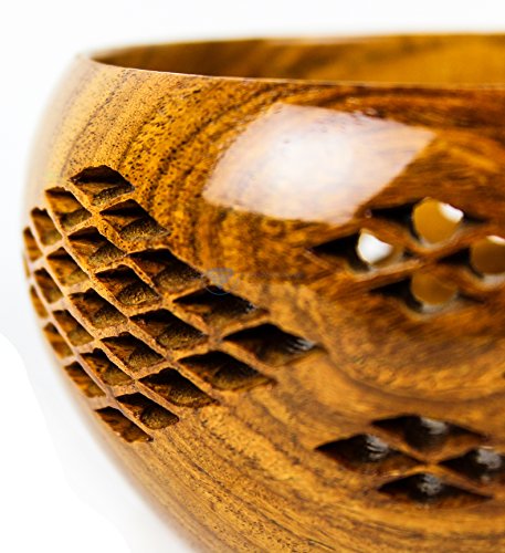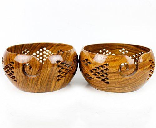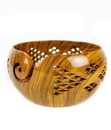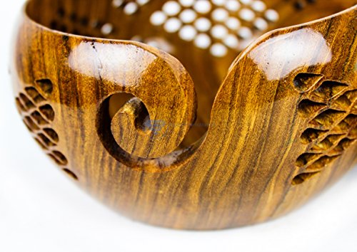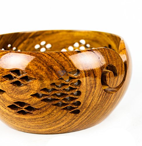 Deluxe Handcrafted Selected Rosewood Yarn Ball/Skein Storage Bowl With Hand-Carved Triangular Decorative Grills - Knitting & Crochet Yarn Storage Bowls & Accessories | Nagina International (Small)