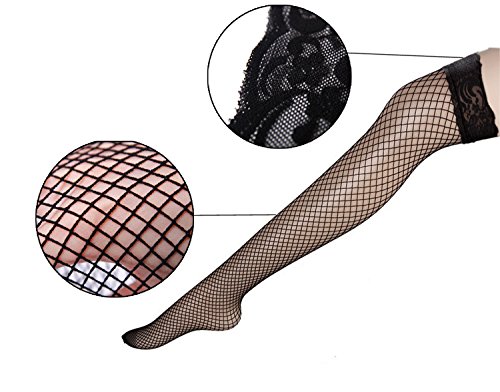 Black Lace Fishnet Thigh Highs Stockings Sexy Women Tights Girls Net High Pantyhose