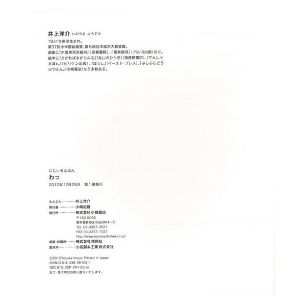 【商品基本情報】 商品名称:わっ 著者/出版社:井上 洋介/井上 洋介 初版発行日:2012/12/25 サイズ:A4変判 ページ数:32 ISBN/JAN:9784338261081/4528189545434