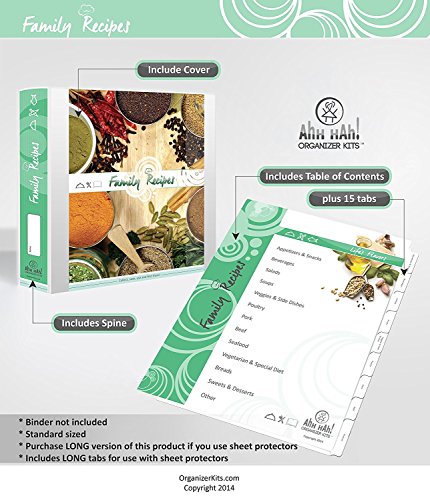 Family Recipe Organizer Kits: STANDARD LENGTH Index Tabs for Three-ring Binder with Cover
