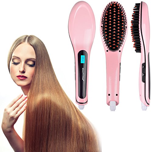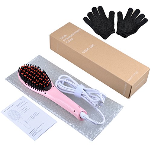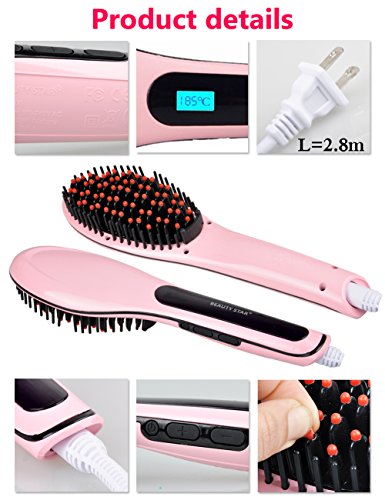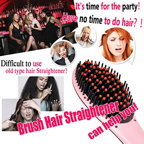 Title : Hair Straightener Comb Ceramic Straightening Brush (Pink)