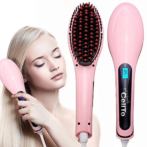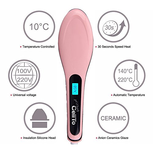 Feature : STRAIGHTENS IN MINUTES: The hair steamer straightener heats up fast and evenly so you can brush out tangles and turn fine, thick, short, long, silky, frizzy, wavy, or thinning hair into renewed straight hair in just minutes with hair care. Just brush, straighten, and go! / STIMULATES HEALTHIER HAIR: Using the power of anion technology to make straight hair and replenish, rejuvenate, strengthen your hair by reducing frizz and static electricity buildup. Anti scald with heat protection, detangling brush for natural cool hair style. / MULTIPURPOSE FUNCTIONALITY: Boost control with our Cellto Complete Hair Care Technology. We've merged a ceramic plate straightener flat iron, hair detangler brush, and anion hair massager together to give your head the benefits of all three in one versatile and portable mini hair brush. / FLEXIBLE TEMPERATURES: The Cellto Digital LCD Display features adjustable heat temperatures to match your specific hair type or style. You don't have to worry about leaving it on by accident because we've included an auto shut-off function because there's nothing worse than having to turn around to check! The Cellto straightening iron comes with dual voltage compatability (220V and 110V) perfect for travel use. / SUPERIOR GUARANTEE: Each of our Cellto Hair Straightening Brushes comes with a 30-day money back guarantee. Simply return it within 30 days of receipt for a full refund.