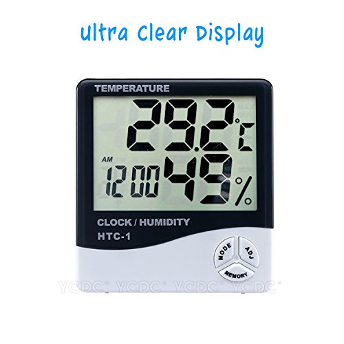 YCDC Digital LCD Temperature Humidity Meter Hygrometer, Greenhouse Room Indoor Thermometer Monitor, Clock Beep Remind