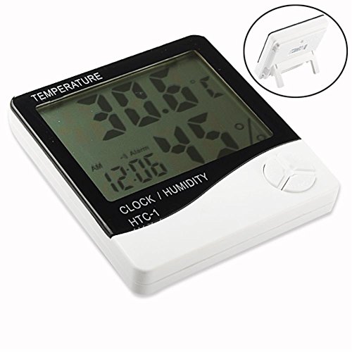 - Large LCD screen display readings can be easily read in distance, even the elders. This portable 3-in-1 hygrometer combines thermometer, clock, and hygrometer together, very practical for home or industry.