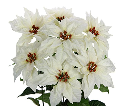 - 7 stems artificial velvet poinsettia x'mas flower Bush, cream