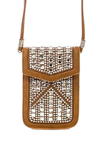 Product Description Premium Rhinestones Smartphone Clutch Two Compartment Cross Over Bag H:7 L:15 W:4 Shoulder Strap Drop 23.5 inches Detachable MATERIAL: Faux Leather 2 Inside Compartment can carry up 5.5 inches Smartphone or iPhone 6 Plus Flap Over Push Click Closure 0