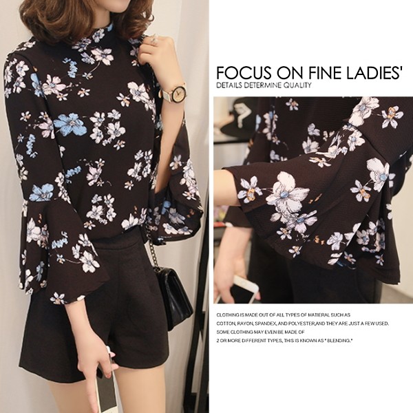 | 説明文 | フレア袖 花柄シフォン ハイネックブラウス♪ フェミニンなフレアスリーブが印象的なハイネックブラウスです。 ロマンティックな花柄ブラウスはコーデのアクセントに重宝します♪ |