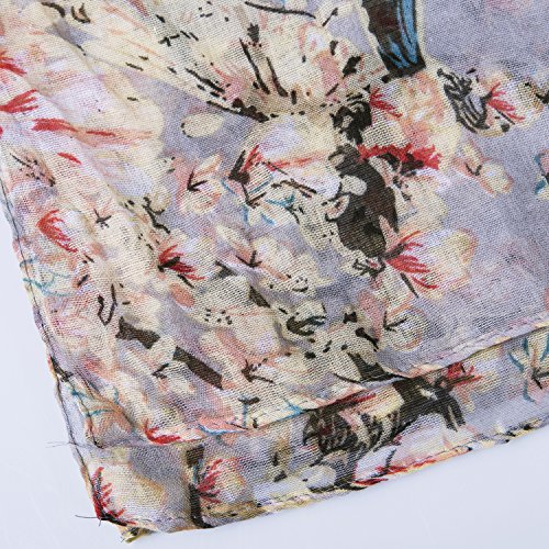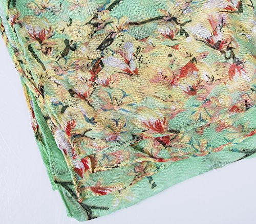 About the product: 1. 100% soft voile, a light semitransparent fabric, cozy thin fabric, warm in winter, ventilated during summer. Light scarf can be worn all year round in all weathers. 2. 35.4"Wx70.9"L(90CMx180CM), nice long fashionable scarves with pretty floral and birds. 3. These spring birds ladies scarves are colorful, suitable for your all kinds of clothing styles, paint your colorful life in spring, summer, fall, and winter. 4. The beautiful and elegant floral birds voile scarf summer scarf is used for wrap, shawl, scarf, beach cover up, head scarves, handbag accessories...Folded to be worn as a scarf around your neck; Make it like an infinity scarf or wear it as a head wrap; Large enough for wearing as a flower summer shawl around your shoulders.