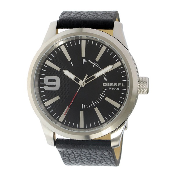 ディーゼル DIESEL ラスプ Rasp クオーツ メンズ 時計 ウォッチ ブラック カジュアル ファッション 人気ブランド  商品仕様:(約)H46×W46×D11mm(ラグ、リューズは除く)、重さ(約)95g、腕周り最大(約)19.5cm、最小(約)14.5cm ステンレス(ケース)、レザー(ベルト) BOX、保証書、取扱説明書