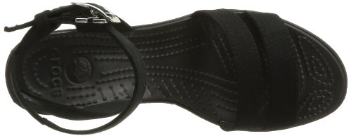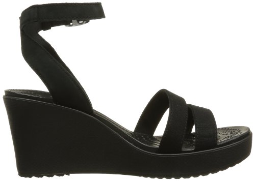 - Feature : Straight-off-the-beach style is yours with this summer-ready sandal / Linen fabric and leather upper / Adjustable ankle strap buckle / Croslite material footbed with circulation nubs / Non-marking Croslite material outsole