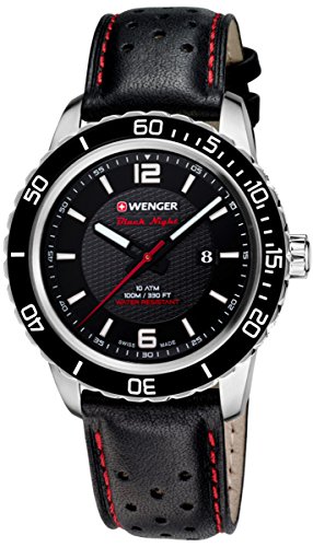 -. Title : Wenger 01.0851.120 Men's Roadster Black Night Black Dial Black Leather Strap Watch