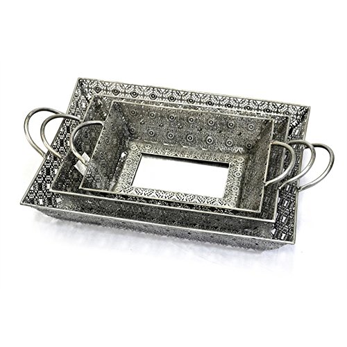 Benzara Traditional Trays with Cutouts Decorative (Set of 3), Silver