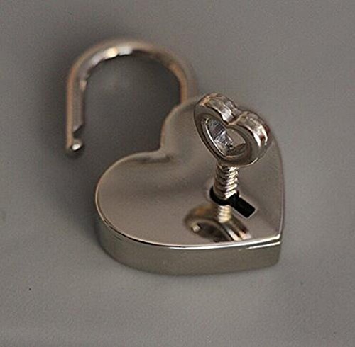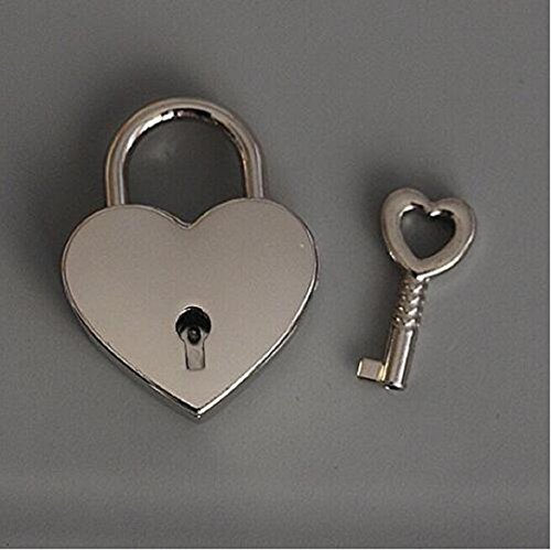 Wendin 1 Pieces Height Polished Heart Shaped Padlock & Skeleton Key ,REPLACEMENT HANDBAG BAG , Wedding Bow Lock ~ Silver Color