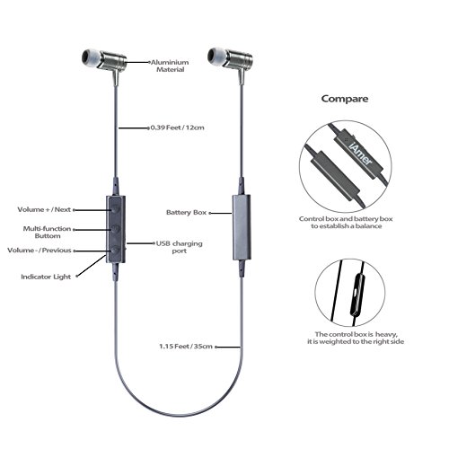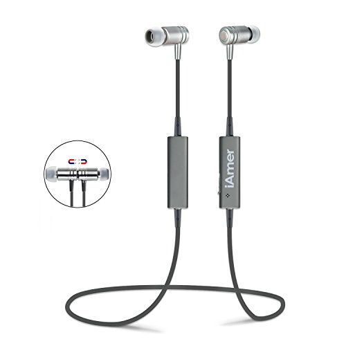 -. Title : Magnetic Bluetooth Headphone,iAmer Sports Wireless Stereo Headset Sweatproof Earphones Earbuds with Microphone for Sports & Running (Magnet attraction,Bluetooth 4.1 Build-in Mic)Grey/Silver