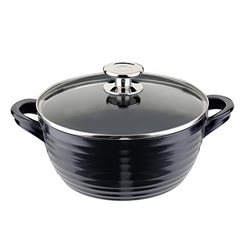 PORTMEIRION SOPHIE CONRAN CAST ALUMINUM CERAMIC COATED COOKWARE BLACK MEDIUM CASSEROLE WITH GLASS LID, 8.0 INCH