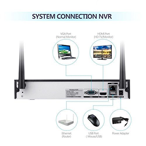 - There are two antennas and high performance built-in router in the NVR system, and there is a antenna with the camera, you can change it to any angle or even you can remove it from the part. Our NVR ensures reliable and stable Wifi connection up to 1000ft in an open area and up to 350ft if there are any obstacles
