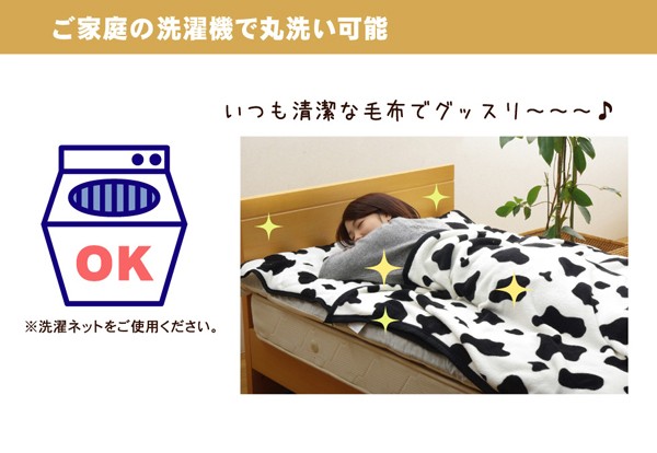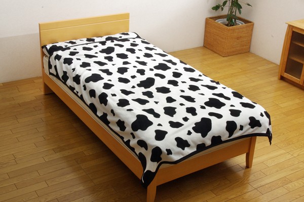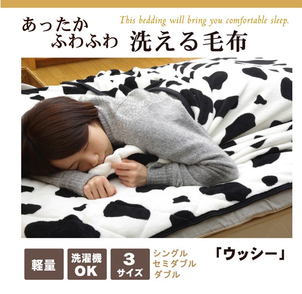 【商品名】毛布 ブランケット ダブル 寝具 牛柄 アニマル柄 サンゴマイヤー 『ウッシーD IT』 ホワイト 約180×200cm