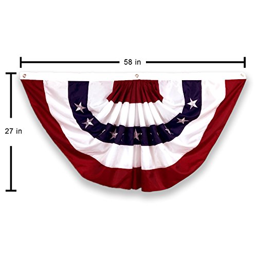 58"x27" USA Patriotic Nylon Bunting Pleated Flag, 2 Sided, Embroidered Stars, Grommets, July 4th American Flag for Outdoor Use