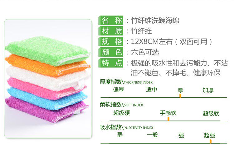 竹纤维神奇刷碗洗碗海绵块不沾油洗碗布不掉渣刷锅海绵洗碗巾