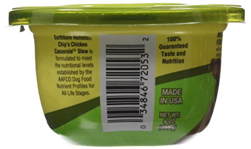 -. Binding : Misc. -. Brand : Earthborn Holistic -. EAN : 0034846720532 -. Feature : 9 oz. resealable containers / Formulated to meet the nutritional levels established by the AAFCO Dog Food Nutrient Profiles for all life stages / This grain-free dinner consists of wholesome vegetables and fruits like carrots, green peas and apples -. Label : Monster Pets -. LegalDisclaimer : Must be at least 18 & over to purchase. Items only ships within United States. -. Manufacturer : Monster Pets -. Model : MWP720532 -. MPN : FBA_MWP720532 -. NumberOfItems : 1 -. PackageQuantity : 1 -. PartNumber : FBA_MWP720532 -. ProductGroup : Pet Products -. ProductTypeName : PET_SUPPLIES -. Publisher : Monster Pets -. Size : 9 oz. -. Studio : Monster Pets -. Title : EARTHBORN HOLISTIC Chips Chicken Casserole Can Pet Food, 8-Ounce, set of 8 -. UPC : 034846720532