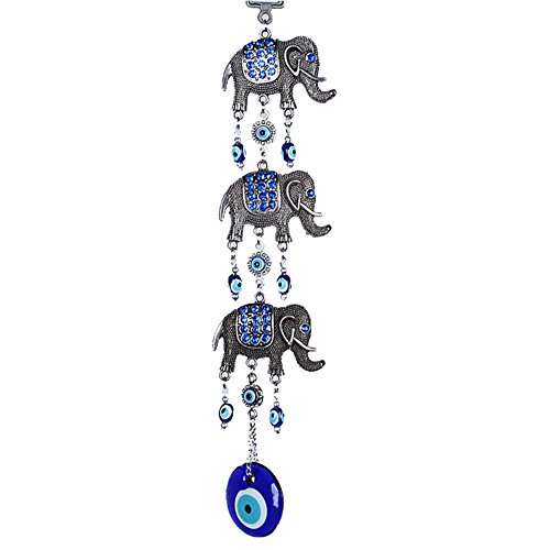Turkish style Blue Evil Eye with Three Lucky Elephants Decoration Hanging Ornament