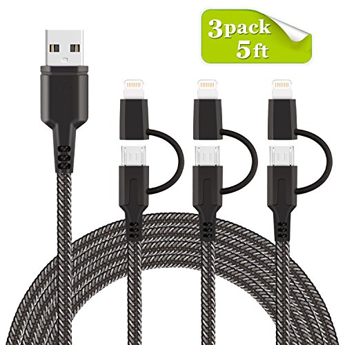 M-Better 3 Pack 5FT Lightning and Micro USB Cable, 2 in 1 USB Charging Cable for iOS and Android, Compatible with iPhone 7 7 Plus 6S 6 Plus 5s iPad iPod, Android Samsung, HTC, LG (Silver Black)