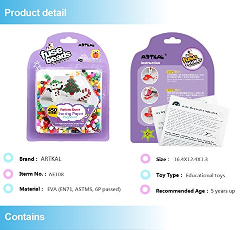 Studio : ARTKAL Publisher : ARTKAL Binding : Toy Product Description Christmas Gifts ?Santa?DIY Jewelry Making Kits ?ARTKAL?Fuse Beads Item no.: ?AE108 Item Name:?Christmas Gifts Contains: ?450 fuse beads 1 pegboard 1 tweezer pattern ironing paper instruction accessories. Product Dimensions: ?6.5 x 4.9 x 0.51 inches Manufacturer recommended age: For ages 5 and up EASY BUY: If you would like to buy replacement ARTKAL fuse beads in bag packing, we have 10 bags, 30 bag, 60 bags set for your choose as below: SB1000-10, SB1000-30, SB1000-60 ...much more easier to choose colors you like. WARNING: Choking Hazard: small parts. Not for children under 3 years. Fused Beads by Artkal. Beading kits Educational toys. Making artkal beads an ideal tool for teaching younger children counting, colors and shapes. Artkal beads come in a variety of colors giving your children the many options of bringing their imagination to life. We have 6 series artkal beads for your choose, ?you can find them as below: S-5mm hard midi artkal fuse beads, ? ? ? R-5mm SOFT midi artkal fuse?beads C-2.6mm hard mini artkal iron beads, ? ?A-2.6mm SOFT mini artkal heating beads M-3mm hard mini artkal metly beads, ? ?X- 10mm hard XL artkal iron beads