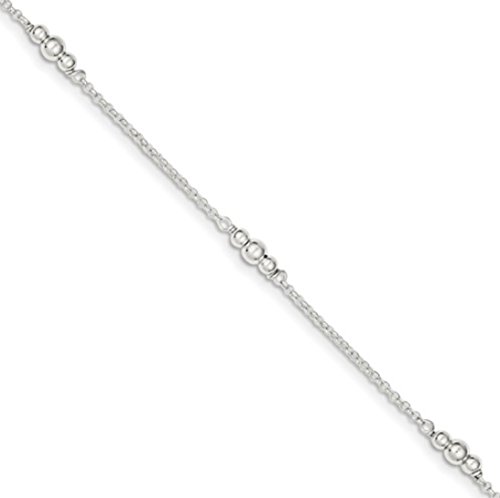 -. Title : Genuine Sterling Silver Polished Bead Element Fancy Anklet Length 9 Inch With 1in Ext.