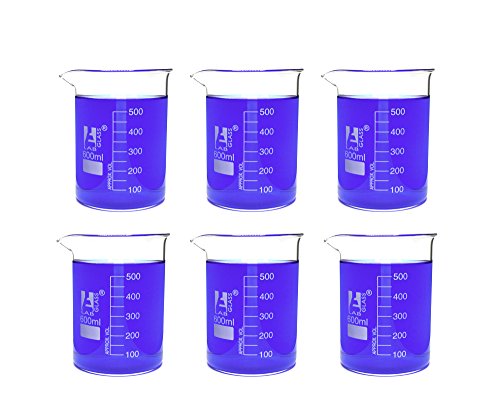 Eisco Labs Beaker - 600mL, Borosilicate Glass, 50mL graduation Low form - Pack of 6